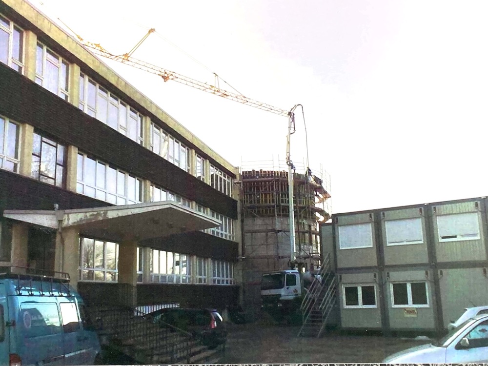 Die Schlüsselübergabe erfolgte an den damaligen Schulleiter Wolfgang Beckert. (Mitte)